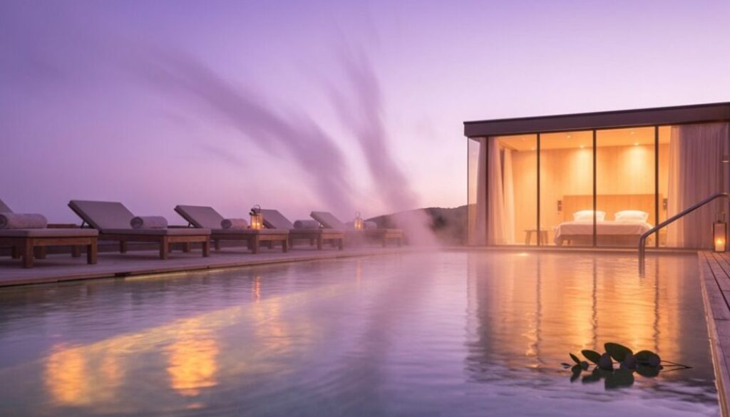 Warmer Mineraldampf kringelt sich um kerzenbeleuchtete Wannen und satinbeleuchtete Lounges, langsame Schritte auf warmem Stein und das Schweigen der Nacht, das sich über Becken legt. Gäste tauschen hektische Zeitpläne gegen lange Bäder, Vierhänder-Massagen und Inhalationsräume, die salzhaltigen Nebel und Eukalyptus verabreichen. Muskeln lockern sich, die Atmung beruhigt sich und der Schlaf vertieft sich, während thermische Abläufe und kerzenbeleuchtete Rituale sich bis in den Abend erstrecken. Raumwahl, Wasserchemie und Paketdetails prägen das Ergebnis, und weitere Hinweise erklären, wie man wählt, packt und bucht.
