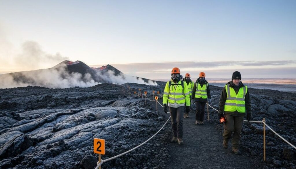 Im Jahr 2026 unterliegt das Vulkan-Trekking in Island strengeren, risikobasierten Regeln, die an Echtzeitüberwachung von SO₂, seismischem Tremor, Bodenverformung, thermischen Anomalien und Wind geknüpft sind. Wanderwege können mit wenig Vorankündigung gesperrt werden, daher sollten Besucher den aktuellen Status vor dem Aufbruch über SafeTravel, Warnmeldungen des IMO und die örtliche Polizei prüfen. Standardisierte Sperrzonen verbieten den Zugang zu Schlote(n), frischen Lavafeldern, Gaskorridoren, instabilen Aschehängen und instrumentierten Bereichen. Organisierte Gruppen benötigen möglicherweise Gasdetektoren, dokumentierte Evakuierungspläne und Satellitenkommunikation. Weitere Details präzisieren Ausrüstungschecks, die Notwendigkeit von Guides und Strafen bei Missachtung von Sperrungen.